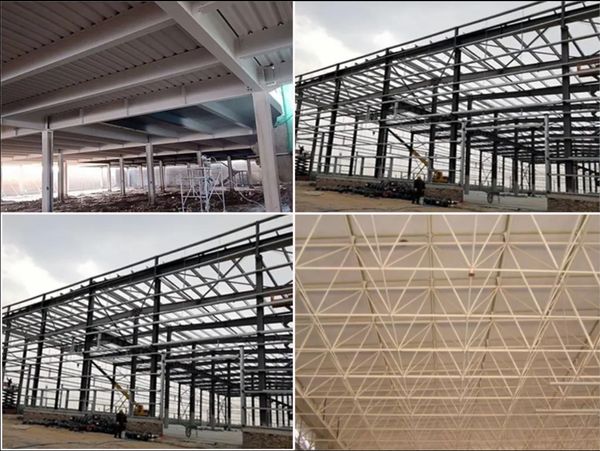 网架结构比较特殊,它是由直径相同或不同的钢管与钢球连接而成。一般为双层结构,每个球平均连接8根钢管。若球数为N,管径为d,两层高度差为h,则总面积约为:S=N×95%×8d/2×2×π×h/0.866